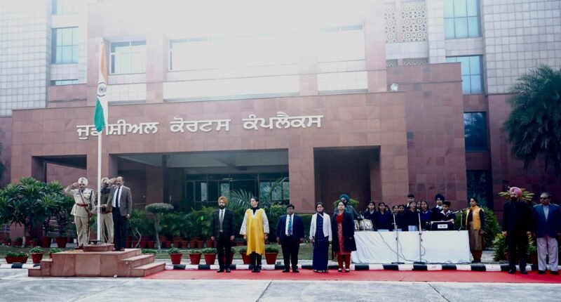 पंजाब 26 जनवरी 2026 (दैनिक खबरनामा) पंजाब के साहिबजादा अजीत सिंह नगर, 26 जनवरी जिला लोक संपर्क अधिकारी कार्यालय के अंतर्गत जिला कोर्ट परिसर,साहिबजादा अजीत सिंह नगर में 26 जनवरी 2026 को 77वां गणतंत्र दिवस हर्षोल्लास और देशभक्ति की भावना के साथ मनाया गया। कार्यक्रम में न्यायिक अधिकारियों, कर्मचारियों और विद्यार्थियों की गरिमा मयी उपस्थिति रही।समारोह की शुरुआत जिला एवं सत्र न्यायाधीश एस.ए.एस. नगर श्री अतुल कसाना द्वारा राष्ट्रीय ध्वज फहराने के साथ हुई। इस अवसर पर उन्होंने उपस्थित सभी न्यायिक अधिकारियों, कर्मचारियों तथा विद्यार्थियों को गणतंत्र दिवस की शुभकामनाएं दीं और संविधान के मूल्यों को अपनाने का संदेश दिया।कार्यक्रम के दौरान सरकारी हाई स्कूल, लांडरां के विद्यार्थियों द्वारा राष्ट्रीय गान की भावपूर्ण प्रस्तुति दी गई, जिसने पूरे वातावरण को देशभक्ति के रंग में रंग दिया। समारोह में राष्ट्र के प्रति समर्पण, एकता और संविधान के आदर्शों को आत्मसात करने का संकल्प भी दोहराया गया।गणतंत्र दिवस का यह आयोजन सभी के लिए प्रेरणादायक रहा और देश के लोकतांत्रिक मूल्यों के प्रति सम्मान को और अधिक सशक्त करता नजर आया।
