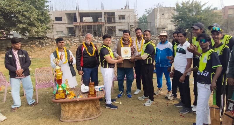मैच में नरेश खटीक ने बेहतरीन ऑलराउंड प्रदर्शन करते हुए 67 रन नाबाद बनाए और 2 विकेट भी झटके। उनके उत्कृष्ट खेल के लिए उन्हें मैन ऑफ द मैच के खिताब से नवाजा गया।विजेता टीम को नेशनल स्पोर्ट्स संघ के राजस्थान प्रभारी डॉ. ओपी टांक ने ट्रॉफी प्रदान कर सम्मानित किया, वहीं उपविजेता टीम को पार्षद प्रत्याशी हेमराज खींची ने ट्रॉफी भेंट की। इस अवसर पर डॉ. ओपी टांक सहित अन्य अतिथियों ने खिलाड़ियों की सराहना करते हुए कहा कि खेल जीवन का अभिन्न अंग है, जो अनुशासन, टीम भावना और स्वस्थ प्रतिस्पर्धा की भावना को विकसित करता है।अतिथियों ने दोनों टीमों के खिलाड़ियों को उनके शानदार प्रदर्शन के लिए बधाई दी और उनके उज्ज्वल भविष्य की कामना की। कार्यक्रम सौहार्दपूर्ण माहौल में संपन्न हुआ और खिलाड़ियों व दर्शकों में खासा उत्साह देखने को मिला।