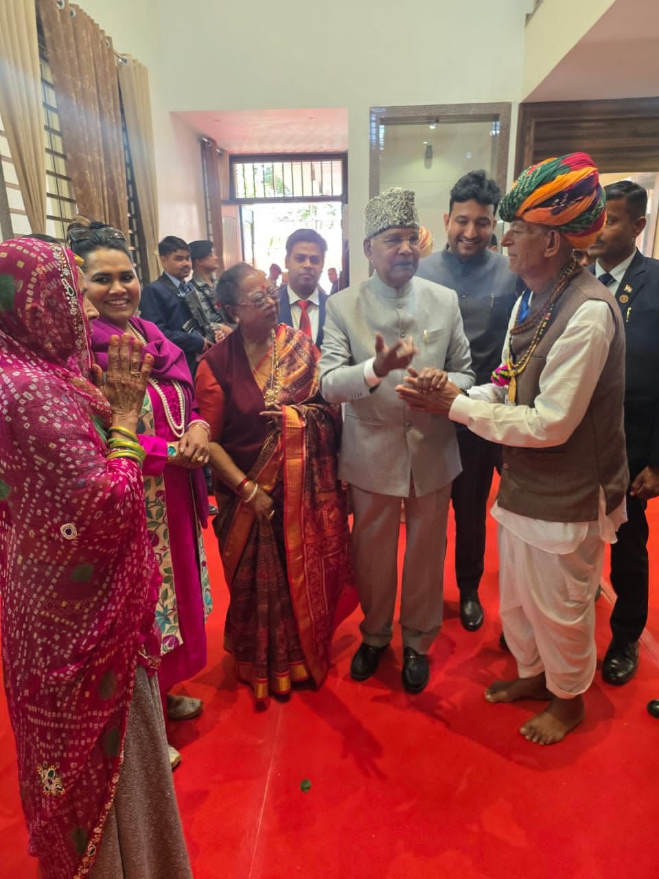 राजस्थान 14 जनवरी (दैनिक खबरनामा) जोधपुर पूर्व राष्ट्रपति रामनाथ कोविंद गुरुवार को अपने परिवार के साथ सोजत सिटी पहुंचे। वे जोधपुर से सड़क मार्ग द्वारा सोजत आए, जहां उनका स्थानीय प्रशासन और आयोजन समिति की ओर से आत्मीय स्वागत किया गया। पूर्व राष्ट्रपति का यह दौरा धार्मिक और आध्यात्मिक कार्यक्रमों से जुड़ा हुआ रहा।सोजत सिटी में श्रीमद् भागवत कथा समिति की ओर से आयोजित भव्य श्रीमद् भागवत कथा में पूर्व राष्ट्रपति रामनाथ कोविंद ने सहभागिता की। कथा स्थल पर बड़ी संख्या में श्रद्धालु उपस्थित रहे। कार्यक्रम के दौरान उन्होंने आध्यात्मिक वातावरण में समय बिताया और आयोजकों की सराहना की।इसके साथ ही पूर्व राष्ट्रपति सहस्त्र चंडी महायज्ञ कार्यक्रम में भी शामिल हुए। वैदिक मंत्रोच्चारण और धार्मिक अनुष्ठानों के बीच उन्होंने पूजा-अर्चना की। महायज्ञ स्थल पर पूरे विधि-विधान के साथ धार्मिक क्रियाएं संपन्न कराई गईं, जिससे क्षेत्र में भक्तिमय माहौल बना रहा।