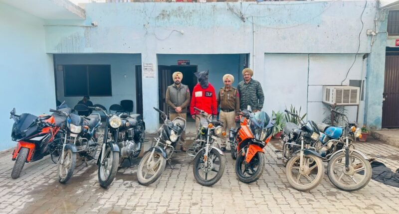 मोहाली 29 दिसम्बर (जगदीश कुमार)मोहाली सिटी पुलिस ने मोटरसाइकिल चोरी के एक बड़े मामले का खुलासा करते हुए तीन आरोपियों को गिरफ्तार किया है। पुलिस ने आरोपियों केकब्जे से अलग-अलग कंपनियों की चोरी की गई कई मोटरसाइकिलें बरामद की हैं।जानकारी के अनुसार,शिकायतकर्ता ने पुलिस को बताया था कि उसकी Yamaha RX-135 मोटरसाइकिल (नंबर CH-01-V-6522) उसके घर के बाहर से चोरी हो गई थी। इस संबंध में थाना सिटी मोहाली में मामला दर्ज कर जांच शुरू की गई।जांच के दौरान पुलिस ने तकनीकी साक्ष्यों और मुखबिर की सूचना के आधार पर 24 दिसंबर 2025 को तीन आरोपियों को काबू किया। पूछताछ में आरोपियों की पहचानपिंड लिंभेवाला निवासी 27 वर्षीय युवक,