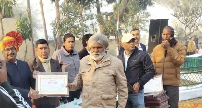 राजस्थान 26 जनवरी 2026 (दैनिक खबरनामा) राजस्थान के हनुमानगढ़ वाली 12 विशिष्ट शख्सियतों को सम्मानित किया गया। यह सम्मान समारोह शिक्षा, खेल, प्रशासन, पुलिस, बिजली, जल संसाधन और सामाजिक सेवा के क्षेत्र में उल्लेखनीय योगदान देने वालों को समर्पित रहा।खेल जगत से भारत पब्लिक स्कूल के खिलाड़ी सुनील कुमार और मां सरस्वती कॉलेज की खिलाड़ी गगनदीप कौर को उनकी उपलब्धियों के लिए सम्मान मिला। व्यापार जगत से व्यापार मंडल अध्यक्ष नागर गर्ग एवं उनकी कार्यकारिणी को व्यापारिक और सामाजिक योगदान के लिए सम्मानित किया गया।