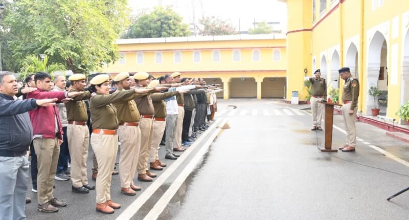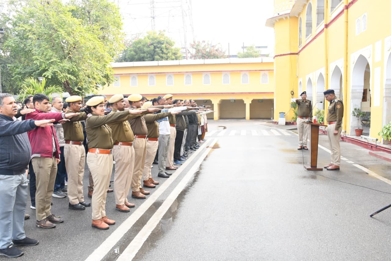 राष्ट्रीय मतदाता दिवस के अवसर पर जयपुर पुलिस कमिश्नरेट में शुक्रवार को विशेष कार्यक्रम का आयोजन किया गया। कार्यक्रम के दौरान अतिरिक्त पुलिस आयुक्त (प्रशासन एवं यातायात) योगेश दाधीच ने पुलिस अधिकारियों एवं कर्मचारियों को लोकतांत्रिक मूल्यों के प्रति निष्ठा बनाए रखने और मतदान के महत्व को समझते हुए अपने संवैधानिक कर्तव्यों के निर्वहन की शपथ दिलाई।इस अवसर पर योगेश दाधीच ने कहा कि मतदान लोकतंत्र की सबसे बड़ी ताकत है और प्रत्येक नागरिक का यह कर्तव्य है कि वह निष्पक्ष, स्वतंत्र और निर्भीक होकर अपने मताधिकार का प्रयोग करे। उन्होंने पुलिस अधिकारियों से अपील की कि वे न केवल स्वयं मतदान करें, बल्कि आम नागरिकों को भी मतदान के लिए प्रेरित करें।कार्यक्रम में पुलिस आयुक्तालय जयपुर के वरिष्ठ अधिकारी, पुलिसकर्मी और कर्मचारी उपस्थित रहे। सभी ने निष्पक्ष चुनाव प्रक्रिया को सुनिश्चित करने, कानून-व्यवस्था बनाए रखने और लोकतांत्रिक व्यवस्था को सशक्त बनाने का संकल्प लिया।राष्ट्रीय मतदाता दिवस के माध्यम से मतदाता जागरूकता का संदेश दिया गया और जिम्मेदार नागरिकता की भूमिका को रेखांकित किया गया। कार्यक्रम के अंत में सभी उपस्थित अधिकारियों और कर्मचारियों ने लोकतंत्र को मजबूत करने के लिए सक्रिय सहभागिता निभाने का संकल्प दोहराया।