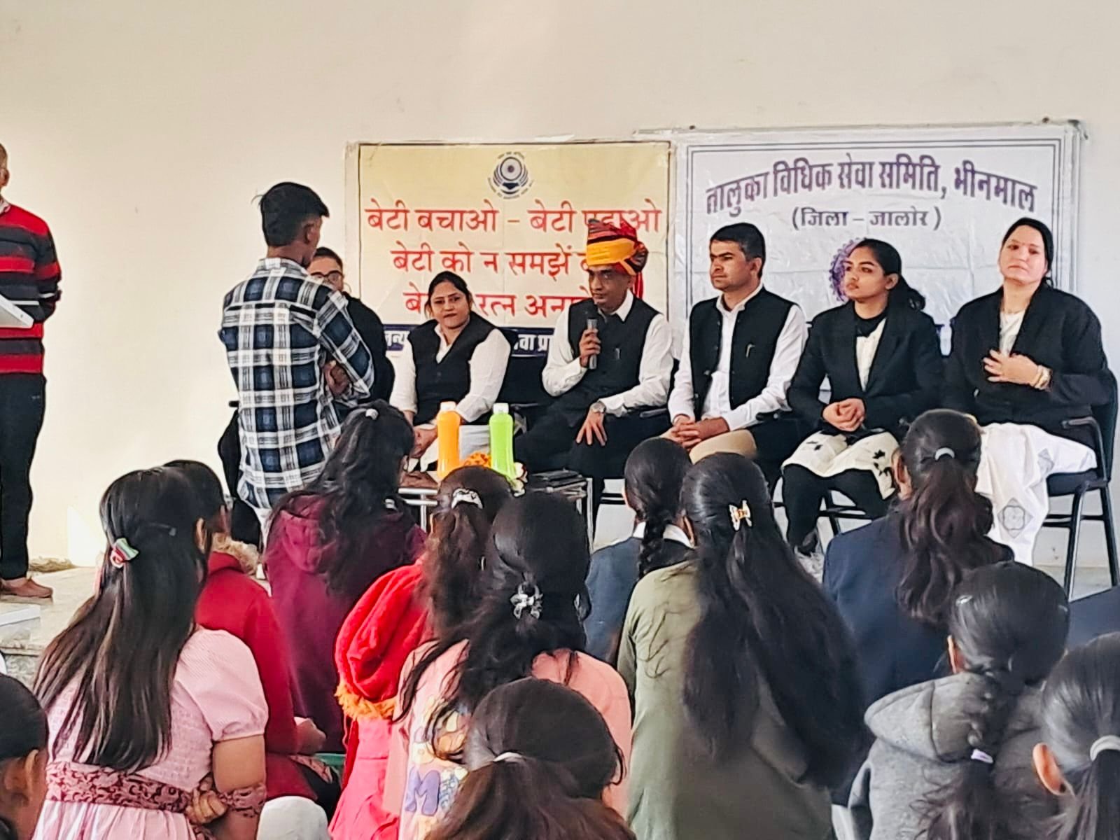 राजस्थान 23 जनवरी (दैनिक खबरनामा)राजस्थान भीनमाल।वसंत पंचमी के पावन अवसर पर दिव्य ज्योति पब्लिक स्कूल एवं कॉलेज, भीनमाल में विधिक जागरूकता एवं विधिक साक्षरता शिविर का आयोजन किया गया। शिविर की अध्यक्षता अतिरिक्त मुख्य न्यायिक मजिस्ट्रेट महेंद्र कुमार टांक ने की। कार्यक्रम का शुभारंभ ज्ञान की देवी मां सरस्वती के समक्ष दीप प्रज्ज्वलन कर किया गया।इस अवसर पर अतिरिक्त मुख्य न्यायिक मजिस्ट्रेट महेंद्र कुमार टांक ने विद्यार्थियों को दैनिक जीवन से जुड़े महत्वपूर्ण कानूनी विषयों की जानकारी दी। उन्होंने मोटर व्हीकल एक्ट के अंतर्गत यातायात नियमों के पालन, हेलमेट और सीट बेल्ट की अनिवार्यता तथा नियमों के उल्लंघन पर लगने वाले दंड के बारे में विस्तार से बताया। इसके साथ ही उन्होंने नशे के बढ़ते प्रचलन और उसके सामाजिक, मानसिक एवं शारीरिक दुष्प्रभावों पर भी प्रकाश डाला।बालिका दिवस की पूर्व संध्या के अवसर पर मजिस्ट्रेट टांक ने बाल विवाह के दुष्परिणामों और इससे जुड़े कानूनी प्रावधानों की जानकारी देते हुए कहा कि बाल विवाह एक अपराध है और इसके खिलाफ समाज को जागरूक होना अत्यंत आवश्यक है। उन्होंने विद्यार्थियों से सामाजिक कुरीतियों के विरुद्ध आवाज उठाने का आह्वान किया।कार्यक्रम में अधिवक्ता हेमलता जैन ने बालिकाओं के लिए संचालित विभिन्न सरकारी योजनाओं की जानकारी दी तथा शिक्षा, स्वास्थ्य और सुरक्षा से जुड़े अधिकारों पर प्रकाश डाला। उन्होंने कहा कि कानून की सही जानकारी से ही समाज में सकारात्मक बदलाव संभव है।शिविर में संस्था निदेशक प्रकाश जांगू, विद्यालय स्टाफ, शिक्षकगण एवं बड़ी संख्या में छात्र-छात्राएं उपस्थित रहे। कार्यक्रम के माध्यम से विद्यार्थियों में विधिक जागरूकता बढ़ाने और उन्हें जिम्मेदार नागरिक बनाने का संदेश दिया गया।