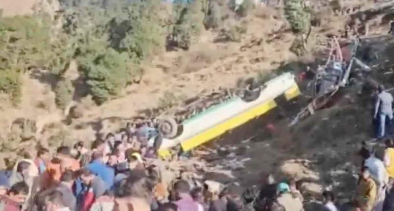सिरमौर 9 जनवरी (दैनिक खबरनामा) हिमाचल प्रदेश के सिरमौर जिले में शुक्रवार को एक भीषण सड़क हादसे ने पूरे क्षेत्र को झकझोर कर रख दिया। हरिपुरधार क्षेत्र के समीप एक निजी बस के गहरी खाई में गिर जाने से कम से कम 8 लोगों की मौत हो गई, जबकि कई यात्री गंभीर रूप से घायल हो गए हैं। हादसे की भयावहता को देखते हुए मृतकों की संख्या बढ़ने की आशंका जताई जा रही है।शिमला जा रही बस खाई में समाई प्राप्त विवरण के अनुसार, यह निजी बस कुपवी से शिमला की ओर जा रही थी। दोपहर बाद हरिपुरधार के पास अचानक बस चालक का नियंत्रण बिगड़ गया और बस सड़क से फिसलकर सैकड़ों फीट नीचे खाई में जा गिरी। दुर्घटना इतनी गंभीर थी कि बस पूरी तरह क्षतिग्रस्त हो गई। बस में लगभग 30 से 35 यात्री सवार बताए जा रहे हैं।ग्रामीण बने मसीहा, बचाव कार्य में जुटे हादसे के तुरंत बाद आसपास के गांवों के लोग घटनास्थल पर पहुंचे और बिना समय गंवाए राहत एवं बचाव कार्य शुरू किया। कई ग्रामीणों ने घायलों को कंधों और पीठ पर उठाकर सड़क तक पहुंचाया। सूचना मिलने पर पुलिस और प्रशासनिक टीमें भी मौके पर पहुंचीं और रेस्क्यू ऑपरेशन को आगे बढ़ाया।पुलिस ने की मौतों की पुष्टि सिरमौर के पुलिस अधीक्षक निश्चिंत सिंह नेगी ने हादसे में 8 लोगों की मौत की पुष्टि की है। उन्होंने बताया कि राहत एवं बचाव कार्य युद्ध स्तर पर जारी है और सभी घायलों को शीघ्र उपचार उपलब्ध कराया जा रहा है। एसपी स्वयं घटनास्थल के लिए रवाना हो गए हैं ताकि स्थिति पर नजर रखी जा सके।घायलों को नाहन रेफर, मंत्री ने जताया शोक हादसे में गंभीर रूप से घायल यात्रियों को संगड़ाह, ददाहू और मेडिकल कॉलेज नाहन रेफर किया गया है। घटना की जानकारी मिलते ही उद्योग मंत्री हर्षवर्धन चौहान ने गहरा शोक व्यक्त किया और नाहन मेडिकल कॉलेज प्रशासन को घायलों के इलाज में कोई कमी न रहने देने के निर्देश दिए।फिलहाल दुर्घटना के कारणों का स्पष्ट पता नहीं चल सका है। पुलिस मामले की जांच कर रही है और तकनीकी व मानवीय पहलुओं की पड़ताल की जा रही है।