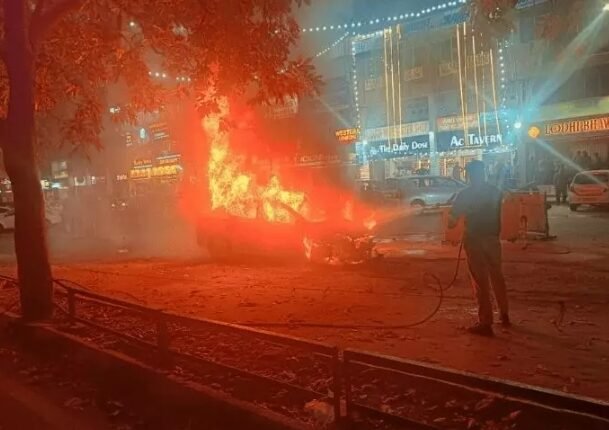 सेक्टर-35 मार्केट में चलती कार में लगी आग, रिटायर्ड पीसीएस अधिकारी बाल-बाल बचे