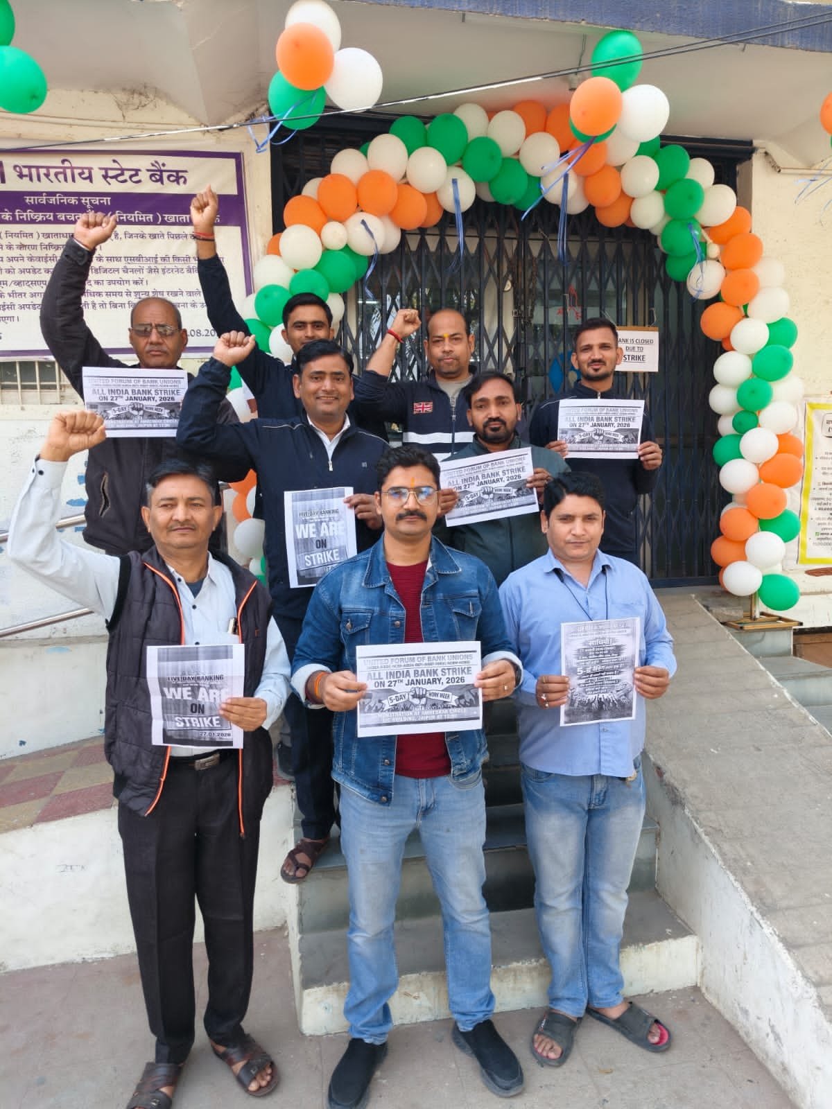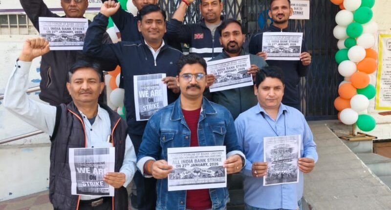 राजस्थान 27 जनवरी 2026(दैनिक खबरनामा) राजस्थान।यूनाइटेड फोरम ऑफ बैंक यूनियन्स (UFBU) के आह्वान पर मंगलवार को राजस्थान के भीनमाल शहर में बैंकिंग सेवाएं पूरी तरह से ठप रहीं। सार्वजनिक क्षेत्र के बैंकों के साथ-साथ निजी, सहकारी और क्षेत्रीय ग्रामीण बैंकों के कर्मचारियों ने पूर्ण हड़ताल में भाग लिया, जिससे शहर की सभी बैंक शाखाओं में दिनभर ताले लटके रहे।बैंक कर्मचारियों द्वारा की गई इस हड़ताल का मुख्य उद्देश्य पाँच दिवसीय बैंकिंग सप्ताह लागू करने और प्रत्येक शनिवार को अवकाश घोषित करने की मांग है। कर्मचारियों का कहना है कि लगातार बढ़ते कार्यभार, स्टाफ की कमी और अतिरिक्त दबाव के कारण बैंक कर्मियों का कार्य संतुलन बिगड़ रहा है, ऐसे में पाँच दिवसीय कार्य सप्ताह उनकी लंबे समय से लंबित जायज मांग है।हड़ताल के चलते नकद लेन-देन, चेक क्लियरेंस, ड्राफ्ट, पासबुक अपडेट, ऋण संबंधित कार्य सहित सभी प्रकार की बैंकिंग सेवाएं प्रभावित रहीं। बैंक पहुंचे खाताधारकों, पेंशनधारकों और व्यापारियों को काफी दिक्कतों का सामना करना पड़ा और कई लोगों को बिना काम के ही लौटना पड़ा।इस दौरान भीनमाल के रीजनल सेक्रेटरी मुकेश चौहान ने कहा कि बैंक यूनियनों की मांगें पूरी तरह न्यायोचित हैं। उन्होंने स्पष्ट किया कि जब तक सरकार और बैंक प्रबंधन कर्मचारियों की मांगों पर ठोस और सकारात्मक निर्णय नहीं लेते, तब तक आंदोलन को और तेज किया जाएगा।बैंक यूनियनों ने केंद्र सरकार से शीघ्र बातचीत कर समस्या का समाधान निकालने की अपील की है, ताकि आम जनता को हो रही असुविधा को समाप्त किया जा सके। फिलहाल, हड़ताल के चलते भीनमाल सहित आसपास के क्षेत्रों में बैंकिंग व्यवस्था पूरी तरह प्रभावित नजर आई।