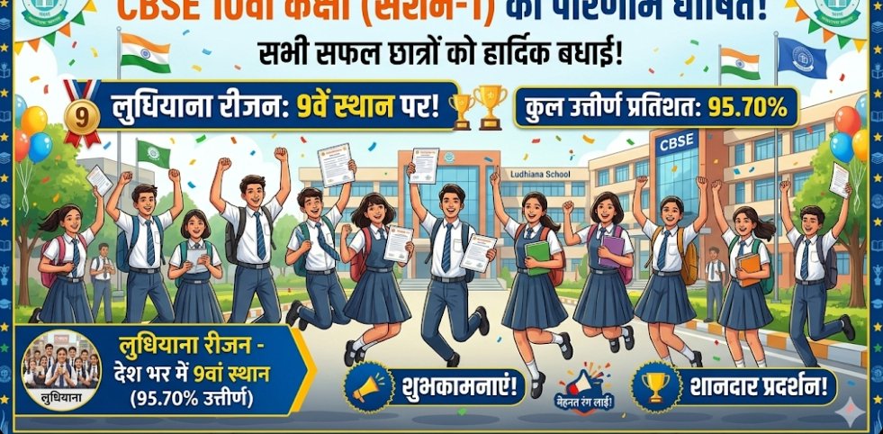 दैनिक खबरनामा 15 अप्रैल 2026 सेंट्रल बोर्ड ऑफ सेकेंडरी एजुकेशन (CBSE) ने 10वीं कक्षा के सेशन-1 का रिजल्ट घोषित कर दिया है। लुधियाना रीजन से करीब 1.20 लाख विद्यार्थियों ने परीक्षा दी, जिनमें से 95.70 प्रतिशत छात्र सफल रहे।ओवरऑल प्रदर्शन में लुधियाना रीजन को देशभर में 9वां स्थान मिला है। छात्र अपना रिजल्ट CBSE की आधिकारिक वेबसाइट और उमंग ऐप पर देख सकते हैं।बोर्ड ने इस बार भी मेरिट लिस्ट जारी नहीं की है और स्कूलों को टॉपर्स घोषित न करने के निर्देश दिए हैं। हालांकि, लुधियाना के कई स्कूलों ने अच्छे अंक हासिल करने वाले छात्रों को सम्मानित करने के लिए बुलाना शुरू कर दिया है।वहीं, CBSE 10वीं के सेशन-2 की परीक्षाएं 15 मई से शुरू होंगी।