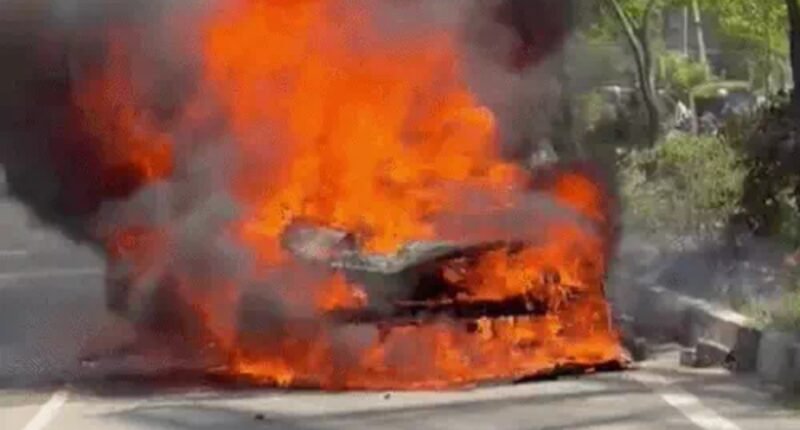 दैनिक खबरनामा 12 मार्च 2026 चंडीगढ़ चंडीगढ़ एयरपोर्ट रोड पर रविवार दोपहर एक चलती BMW कार में अचानक आग लगने से अफरा-तफरी मच गई। आग लगते ही कार से बम फटने जैसी तेज आवाजें आने लगीं। गनीमत रही कि ड्राइवर ने समय रहते गाड़ी से कूदकर अपनी जान बचा ली।यह हादसा न्यू चंडीगढ़ से एयरपोर्ट की ओर जाने वाली सड़क पर टीडीआई के पास करीब पौने 3 बजे हुआ। प्रत्यक्षदर्शियों के अनुसार, कार सामान्य रूप से चल रही थी, तभी उसमें से अचानक चिंगारी निकली और कुछ ही सेकंड में धुआं फैल गया। देखते ही देखते पूरी कार आग की चपेट में आ गई और आग का गोला बन गई।घटना के दौरान लगातार धमाकों की आवाजें सुनाई दीं, जिससे आसपास मौजूद लोग दहशत में आ गए। इस वजह से कुछ समय के लिए ट्रैफिक भी प्रभावित रहा। सूचना मिलते ही मोहाली फेज-1 फायर स्टेशन से फायर ब्रिगेड की टीम मौके पर पहुंची और करीब एक घंटे की मशक्कत के बाद आग पर काबू पाया गया। हालांकि तब तक कार पूरी तरह जलकर खाक हो चुकी थी।पुलिस के अनुसार, कार की नंबर प्लेट भी जल गई हैं, जिससे पहचान में दिक्कत आ रही है। अब इंजन नंबर के आधार पर मालिक की पहचान की जा रही है। शुरुआती जानकारी में सामने आया है कि कार मोहाली के पते पर रजिस्टर्ड है और मालिक का नाम सुरेंद्र सिंह बताया जा रहा है। आग लगने की वजह इंजन फॉल्ट मानी जा रही है।