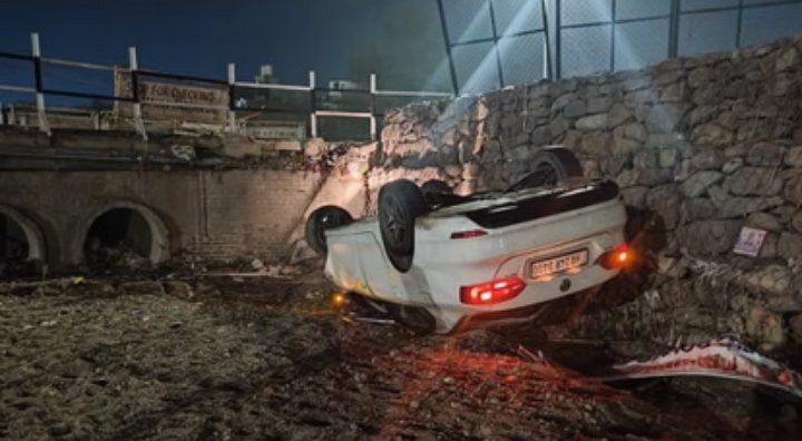 चंडीगढ़ 28 फरवरी 2026(दैनिक खबरनामा) चंडीगढ़ के सेक्टर-26 स्थित बापूधाम पुल पर शुक्रवार तड़के करीब 3:30 बजे एक दर्दनाक हादसा हो गया। तेज रफ्तार वॉक्सवैगन कार अचानक अनियंत्रित होकर पुल से नीचे जा गिरी। हादसे में कार सवार चार युवक और एक युवती घायल हो गए। राहत की बात यह है कि सभी घायलों की हालत फिलहाल स्थिर बताई जा रही है।पुलिस के अनुसार कार चालक की पहचान नितेश के रूप में हुई है, जो बलटाना के हरमिलाप नगर का निवासी है। प्रारंभिक जांच में सामने आया है कि कार में सवार युवक कथित तौर पर नशे की हालत में थे। आशंका जताई जा रही है कि तेज रफ्तार और नशे के कारण चालक वाहन पर नियंत्रण खो बैठा, जिससे यह हादसा हुआ।घटना की सूचना मिलते ही पुलिस मौके पर पहुंची। स्थानीय लोगों की मदद से सभी घायलों को बाहर निकालकर तुरंत सेक्टर-16 स्थित सरकारी अस्पताल में भर्ती कराया गया। युवती को प्राथमिक उपचार के बाद डॉक्टरों की निगरानी में रखा गया है।पुलिस ने क्षतिग्रस्त कार को कब्जे में लेकर जांच शुरू कर दी है। चालक का मेडिकल परीक्षण कराया जा रहा है और रिपोर्ट आने के बाद आगे की कानूनी कार्रवाई की जाएगी।