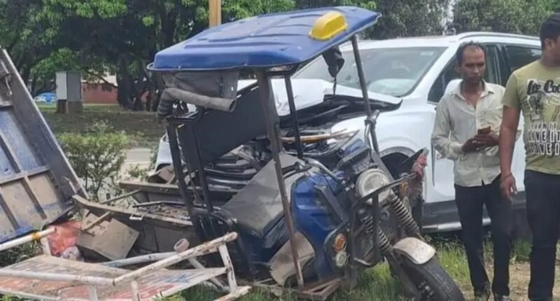 दैनिक खबरनामा 1 अप्रैल 2026 चंडीगढ़ में बुधवार को एक दर्दनाक सड़क हादसा सामने आया। सेक्टर-28/इंडस्ट्रियल एरिया लाइट पॉइंट पर तेज रफ्तार कार ने सब्जी से भरे ऑटो को टक्कर मार दी। टक्कर इतनी भीषण थी कि कार ऑटो को करीब 100 मीटर तक घसीटती हुई ले गई। हादसे के बाद आरोपी चालक गाड़ी मौके पर छोड़कर फरार हो गया।घायल सुनील यादव सब्जी सप्लाई का काम करता है और हादसे के समय सेक्टर-26 मंडी से सब्जी लेकर एलांते मॉल जा रहा था। तभी लाइट पॉइंट पर तेज रफ्तार कार ने उसे जोरदार टक्कर मार दी।प्रत्यक्षदर्शियों के अनुसार, टक्कर के बाद कार चालक ऑटो को काफी दूर तक घसीटता रहा। जब आसपास लोगों की भीड़ इकट्ठी होने लगी तो चालक मौके से फरार हो गया। बताया जा रहा है कि कार में दो लोग सवार थे, लेकिन अभी तक किसी की गिरफ्तारी नहीं हो पाई है।हादसे में सुनील यादव के सिर पर गंभीर चोट आई है और उसके दो दांत भी टूट गए हैं। उसे तुरंत सेक्टर-32 अस्पताल में भर्ती कराया गया, जहां उसका इलाज जारी है। पुलिस मामले की जांच में जुटी है और फरार आरोपियों की तलाश की जा रही है।