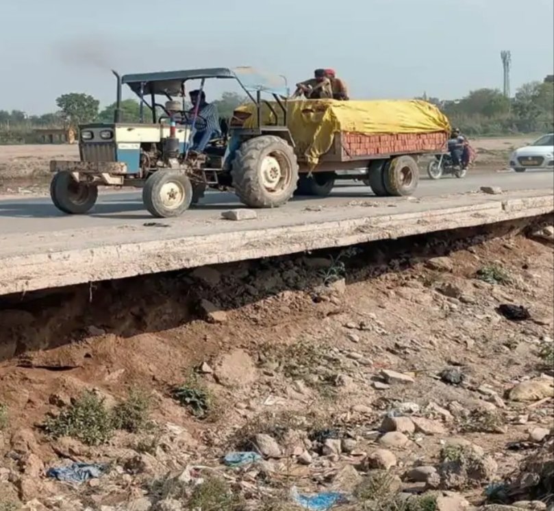 पंजाब 17मार्च 2026(दैनिक खबरनामा ) पंजाब के मोहाली जिले में ढकोली से मुबारकपुर को जोड़ने वाली मुख्य सड़क पर घग्गर नदी के ऊपर बना काजवे बड़े हादसे का कारण बन सकता है। तेज बहाव से हुए कटाव के चलते सड़क का एक बड़ा हिस्सा अंदर से पूरी तरह खोखला हो चुका है। ऊपर से सड़क सामान्य दिखती है, लेकिन नीचे से मिट्टी खिसक जाने के कारण केवल डामर की पतली परत बची है, जिससे कभी भी सड़क धंस सकती है।इस मार्ग से रोजाना हजारों वाहन गुजरते हैं। स्थानीय लोगों का कहना है कि भारी वाहनों के गुजरने पर सड़क में कंपन महसूस होता है, जिससे खतरा और बढ़ गया है।सबसे चिंता की बात यह है कि मौके पर न तो कोई चेतावनी बोर्ड लगाया गया है और न ही बैरिकेडिंग की गई है। खासकर रात के समय दोपहिया वाहन चालकों के लिए यह रास्ता बेहद खतरनाक साबित हो सकता है। लोगों का कहना है कि हर साल बरसात में यह समस्या सामने आती है, लेकिन प्रशासन केवल अस्थायी मरम्मत कर अपनी जिम्मेदारी पूरी कर देता है।