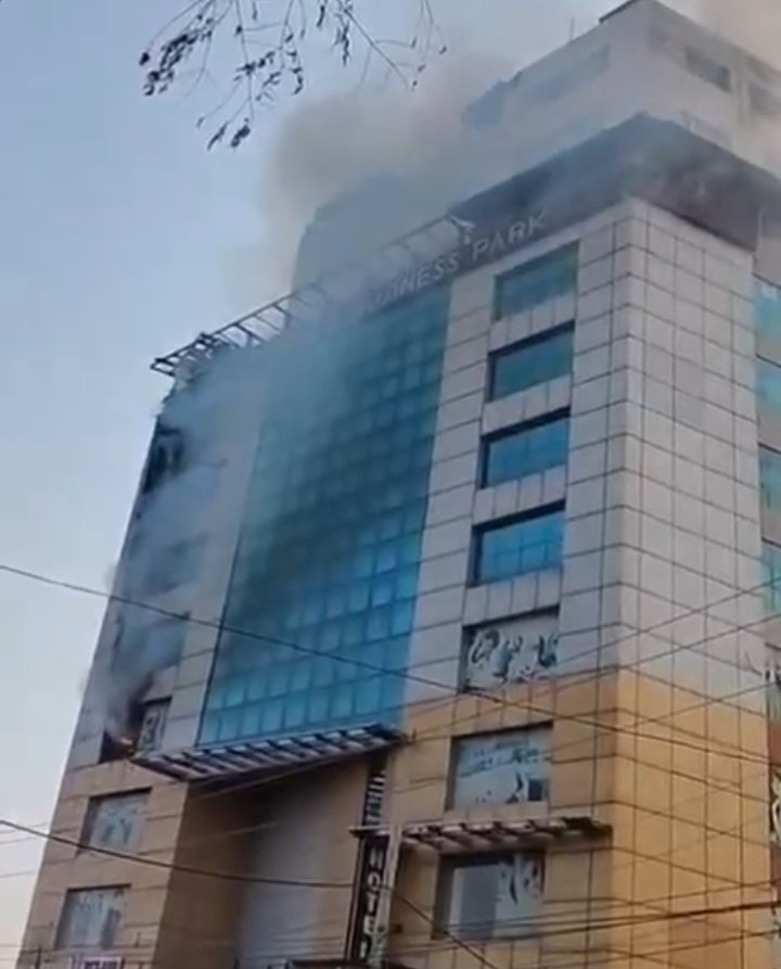 पंजाब 27 फरवरी 2026 (जगदीश कुमार) पंजाब के जीरकपुर: शहर के व्यस्त व्यावसायिक क्षेत्र में स्थित मिड टाउन बिजनेस पार्क में आज अचानक आग लगने से अफरा-तफरी मच गई। प्रारंभिक जांच में सामने आया है कि आग भवन के अंदर स्थित एक कॉफी हाउस की किचन से शुरू हुई। देखते ही देखते धुआं पूरे परिसर में फैल गया, जिससे वहां मौजूद लोगों में हड़कंप मच गया।