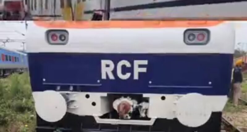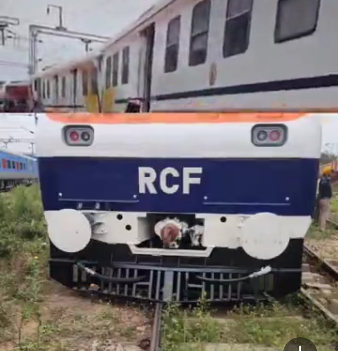 पंजाबी 11 मार्च 2026 ( दैनिक खबरनामा) पंजाब के कपूरथला स्थित रेल कोच फैक्ट्री (RCF) में बुधवार को एक नव निर्मित MEMU रेक टेस्टिंग के दौरान अनियंत्रित हो गया, जिससे उसका ड्राइविंग मोटर कोच (DMC) पटरी से उतर गया। इस हादसे में करोड़ों रुपए की रेलवे संपत्ति को नुकसान पहुंचा, हालांकि किसी भी प्रकार की जनहानि नहीं हुई। प्रत्यक्षदर्शियों के अनुसार, घटना के समय वहां से गुजर रही एक कार भी बाल-बाल बच गई।