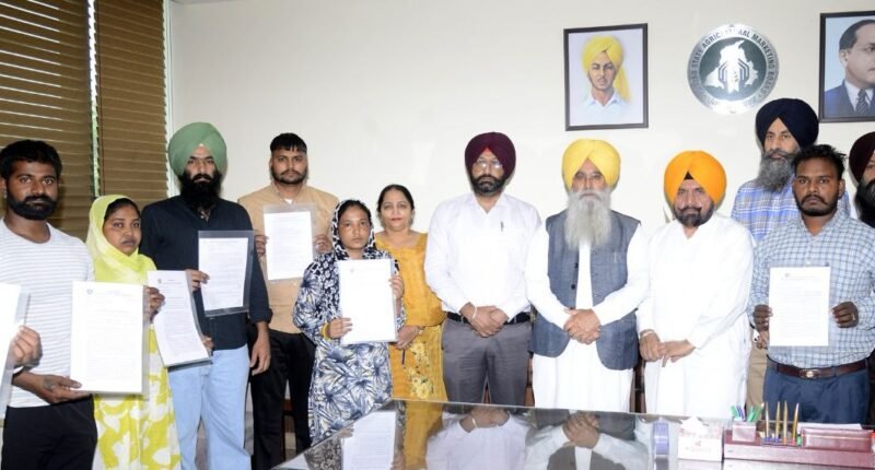 दैनिक ख़बरनामा एस.ए.एस. नगर, 24 अप्रैल 2026 पंजाब के कृषि एवं किसान कल्याण मंत्री गुरमीत सिंह खुड्डियां और पंजाब मंडी बोर्ड के चेयरमैन हरचंद सिंह बरस्ट ने एस.ए.एस. नगर स्थित मंडी बोर्ड के मुख्य कार्यालय में आठ उम्मीदवारों को तरस के आधार पर नियुक्ति पत्र सौंपे।इस अवसर पर मंत्री गुरमीत सिंह खुड्डियां ने बताया कि ये नियुक्तियां मुख्यमंत्री भगवंत सिंह मान के नेतृत्व वाली पंजाब सरकार की नीति के तहत की गई हैं। इस नीति का उद्देश्य मृतक कर्मचारियों के आश्रितों को जल्द से जल्द आर्थिक सहायता प्रदान करना है।उन्होंने कहा कि राज्य सरकार युवाओं को बिना किसी सिफारिश के केवल मेरिट के आधार पर सरकारी नौकरियां दे रही है और अब तक 65,000 से अधिक सरकारी नौकरियां प्रदान की जा चुकी हैं।नव-नियुक्त कर्मचारियों को बधाई देते हुए उन्होंने उन्हें अपनी जिम्मेदारियां ईमानदारी, समर्पण और पूरी लगन के साथ निभाने के लिए प्रेरित किया। उन्होंने कहा कि यह कदम प्रभावित परिवारों के लिए बड़ा सहारा साबित होगा।इस मौके पर पंजाब मंडी बोर्ड के वरिष्ठ अधिकारी भी उपस्थित रहे।