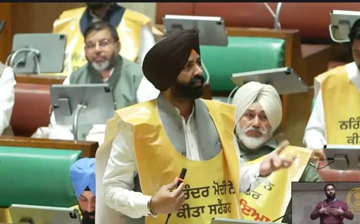 पंजाब 16 मार्च 2026 (दैनिक खबरनामा) पंजाब विधानसभा के बजट सत्र के अंतिम दिन सोमवार (16 मार्च) को आम आदमी पार्टी (AAP) अपने विरोधियों पर काफी आक्रामक नजर आई। गैस सिलेंडरों की कथित किल्लत और अंतरराष्ट्रीय हालातों के कारण सप्लाई पर पड़े असर को लेकर AAP के विधायकों और मंत्रियों ने विधानसभा के बाहर और अंदर केंद्र की बीजेपी सरकार के खिलाफ जोरदार प्रदर्शन किया।सोमवार सुबह AAP के विधायक और मंत्री पूरी तैयारी के साथ विधानसभा पहुंचे। इस दौरान उन्होंने प्रतीकात्मक तौर पर चोले पहनकर विरोध जताया और इजराइल-ईरान के बीच तनाव के कारण पैदा हुई सिलेंडर समस्या का मुद्दा उठाया। विधायक और मंत्री इसी वेशभूषा में सदन के भीतर भी पहुंचे और केंद्र सरकार तथा प्रधानमंत्री नरेंद्र मोदी के खिलाफ नारेबाजी की।सत्र के दौरान AAP नेता और वित्त मंत्री हरपाल सिंह चीमा ने दलित नेता कांशीराम को भारत रत्न देने का प्रस्ताव पेश किया। कांग्रेस नेताओं प्रताप सिंह बाजवा और सुखविंदर सिंह सुक्खी ने इस प्रस्ताव का समर्थन किया। बाजवा ने कहा कि यह फैसला सामाजिक न्याय की भावना से प्रेरित है। वहीं चीमा ने बताया कि रोपड़ स्थित कांशीराम के गांव के स्कूल का नाम उनके नाम पर रखने और लगभग 2 करोड़ रुपये की लागत से उसे अपग्रेड करने की योजना है।