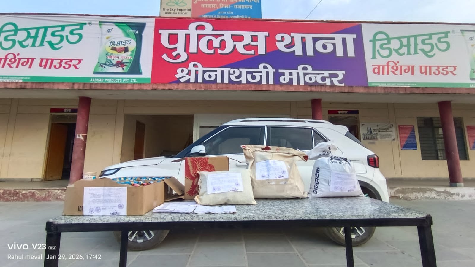 राजस्थान 29 जनवरी 2026 (दैनिक खबरनामा) राजस्थान के राजसमंद जिला पुलिस अधीक्षक श्रीमती ममता गुप्ता के निर्देशन में तथा अतिरिक्त पुलिस अधीक्षक महेंद्र पारिक एवं वृत्ताधिकारी नाथद्वारा श्रीमती शिप्रा राजावत के निकटतम सुपरविजन में थाना श्रीनाथजी मंदिर पुलिस ने एनडीपीएस एक्ट के तहत बड़ी कार्रवाई करते हुए अवैध मादक पदार्थों की तस्करी का पर्दाफाश किया है।थानाधिकारी विक्रम सिंह, पुलिस निरीक्षक के नेतृत्व में डीएसबी टीम द्वारा की गई इस कार्रवाई में पुलिस ने 5 किलो 262 ग्राम गांजा, 0.93 मिलीग्राम स्मैक, भारी मात्रा में अवैध शराब, 16 लाख 91 हजार 300 रुपये नकद तथा तस्करी में प्रयुक्त वेन्यु कार (RJ-30-CB-5259) जब्त कर एक आरोपी को गिरफ्तार किया है।पुलिस के अनुसार 28 जनवरी 2026 को डीएसबी से सूचना मिली कि गिरिराजपुरा क्षेत्र में सुरेंद्र सिंह के मकान में अवैध मादक पदार्थों की बिक्री की जा रही है। सूचना पर पुलिस टीम मौके पर पहुंची और नियमानुसार तलाशी ली गई। तलाशी के दौरान कमरे में रखे लोहे के पलंग व अलमारी से स्मैक की 6 पुड़िया, देशी शराब के 96 पव्वे, 12 बोतल किंगफिशर स्ट्रॉन्ग बीयर, बड़ी मात्रा में गांजा और नकदी बरामद हुई।गिरफ्तार आरोपी की पहचान सुरेंद्र सिंह उर्फ सूर्या, पिता कान सिंह, उम्र 38 वर्ष, निवासी गिरिराजपुरा, थाना श्रीनाथजी मंदिर, जिला राजसमंद के रूप में हुई है। आरोपी के पास मादक पदार्थ रखने और बेचने का कोई वैध लाइसेंस या दस्तावेज नहीं पाया गया।पुलिस ने आरोपी के विरुद्ध धारा 8/20, 8/21 एनडीपीएस एक्ट एवं धारा 19/54 आबकारी अधिनियम के तहत प्रकरण दर्ज कर उसे गिरफ्तार किया। प्रकरण का अग्रिम अनुसंधान नरेंद्र सिंह भाटी, थानाधिकारी खमनोर द्वारा किया जा रहा है।पुलिस आरोपी से मादक पदार्थों की खरीद-फरोख्त, सप्लाई चैन और नेटवर्क से जुड़े अन्य लोगों के संबंध में गहन पूछताछ कर रही है।