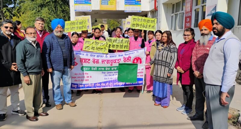 मोहाली, में विश्व कुष्ठ दिवस के अवसर पर जिला स्वास्थ्य विभाग मोहाली द्वारा जिला अस्पताल से कुष्ठ रोग जागरूकता रैली का आयोजन किया गया। रैली को सिविल सर्जन डॉ. संगीता जैन ने हरी झंडी दिखाकर रवाना किया।रैली में नर्सिंग कॉलेज के छात्र-छात्राओं ने बढ़-चढ़कर भाग लिया।प्रतिभागियों ने हाथों में तख्तियां लेकर कुष्ठ रोग से जुड़ी सामाजिक भ्रांतियों को तोड़ने और यह संदेश देने का प्रयास किया कि कुष्ठ रोग न तो वंशानुगत है और न ही असाध्य।रैली को संबोधित करते हुए सिविल सर्जन डॉ. संगीता जैन ने कहा कि कुष्ठ रोग को लेकर समाज में फैली गलत धारणाओं को दूर करना बेहद जरूरी है। यह कोई लाइलाज बीमारी नहीं है, बल्कि पूरी तरह से इलाज योग्य है। उन्होंने कहा कि कुष्ठ रोग से ग्रसित लोग भी समाज का अहम हिस्सा हैं और उनके साथ किसी भी प्रकार का भेदभाव नहीं किया जाना चाहिए। उन्हें भी सम्मानपूर्वक और स्वस्थ जीवन जीने का पूरा अधिकार है।डॉ.जैन ने बताया कि कुष्ठ रोग एक बैक्टीरियल संक्रमण है, जो धीरे-धीरे बढ़ता है। समय पर इलाज न मिलने पर यह नसों को प्रभावित कर सकता है, जिससे शारीरिक विकृति जैसी गंभीर समस्याएं उत्पन्न हो सकती हैं।
